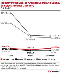Data is from the 2025 MindgruveMacarta’s quarterly data set and based on the analysis of ecommerce platforms: Amazon Brazil (AMAZON BR), Amazon Mexico (AMAZON MX), Mercado Livre in Brazil (MERCADO LIVRE BR), and Mercado Livre Mexico (MERCADO LIVRE MX). Data aggregation was facilitated through the platforms’ APIs. Data acquisition for this data set was conducted on March 30, 2025.