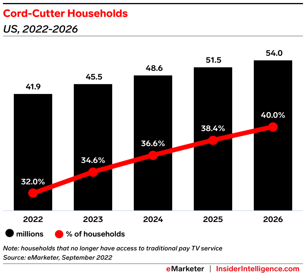 - That makes sense since just over a third (33.1%) of consumers will cut the cord this year, and streaming is making landmark gains over linear TV.