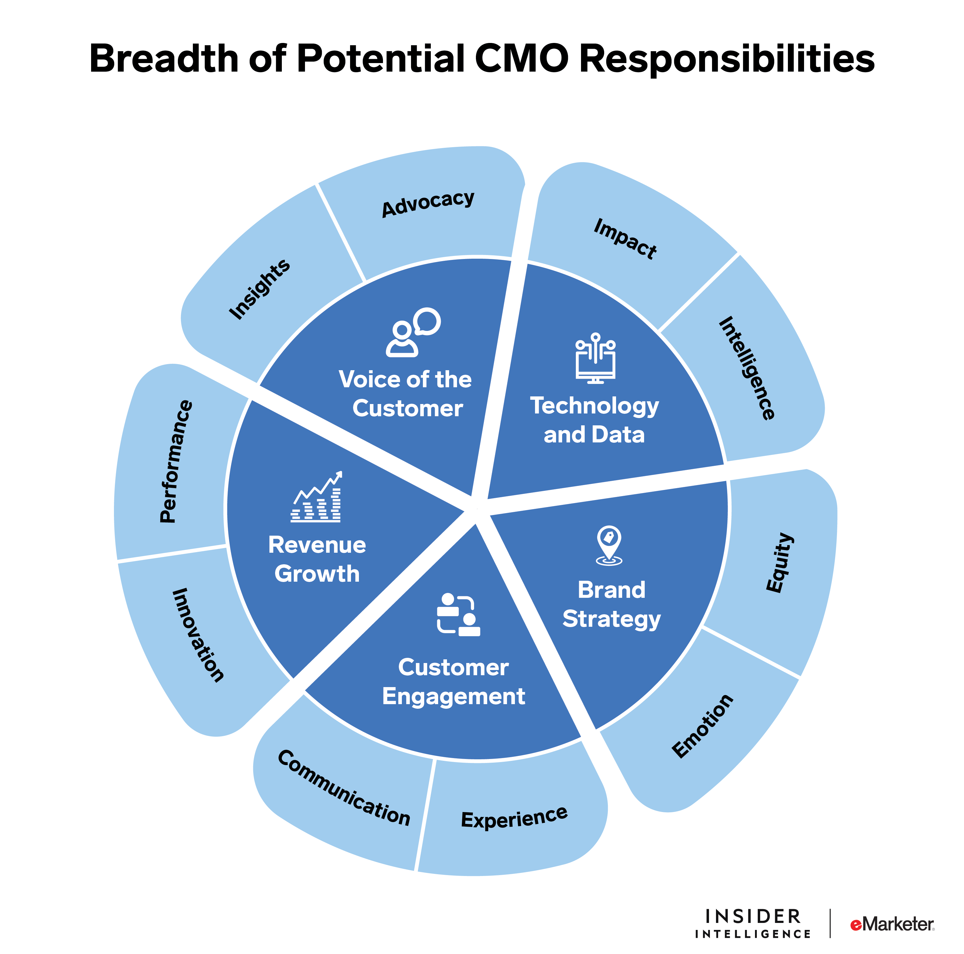 - In high-growth and challenger brands, they may own innovation and channel management. In some industries, a chief revenue officer is responsible for both marketing and sales
