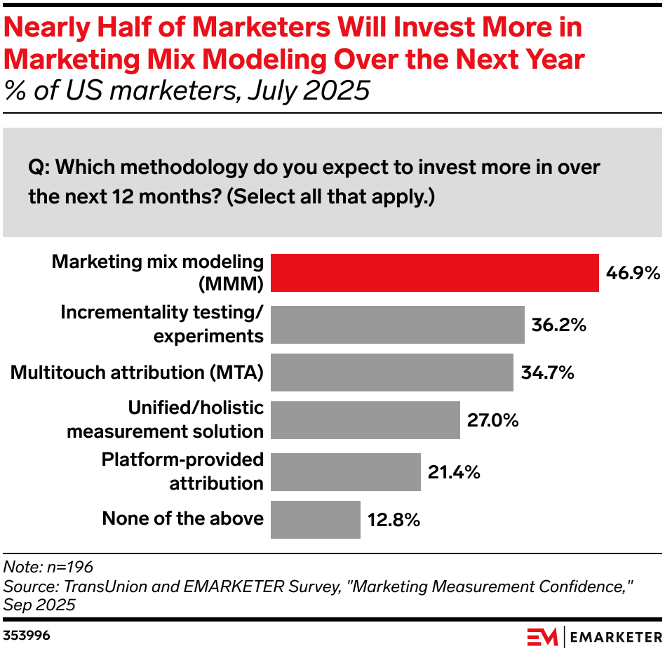 Key Stat: Over the next 12 months, 7 of 8 US marketers will invest more money in one of these five measurement methodologies.