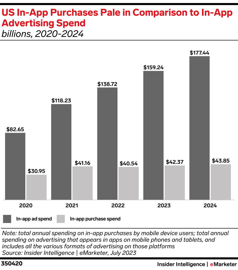 In-app ad spend growth remains healthy at 14.8% this year, translating to an additional $20.52 billion in ad sales over 2022.
