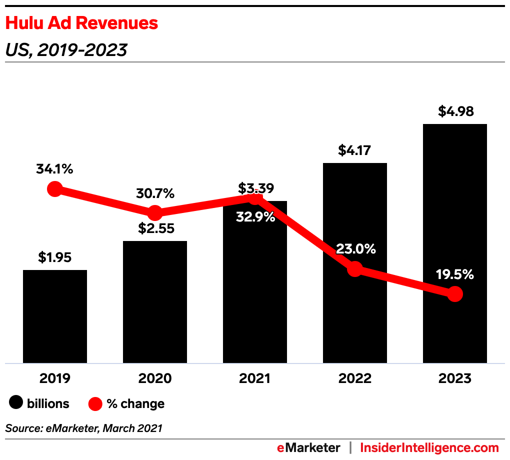 - We estimate that Hulu ad revenues will increase by 32.9% this year to $3.39 billion. (Hulu remains a domestic-only service, so this figure refers only to US advertising revenues.)