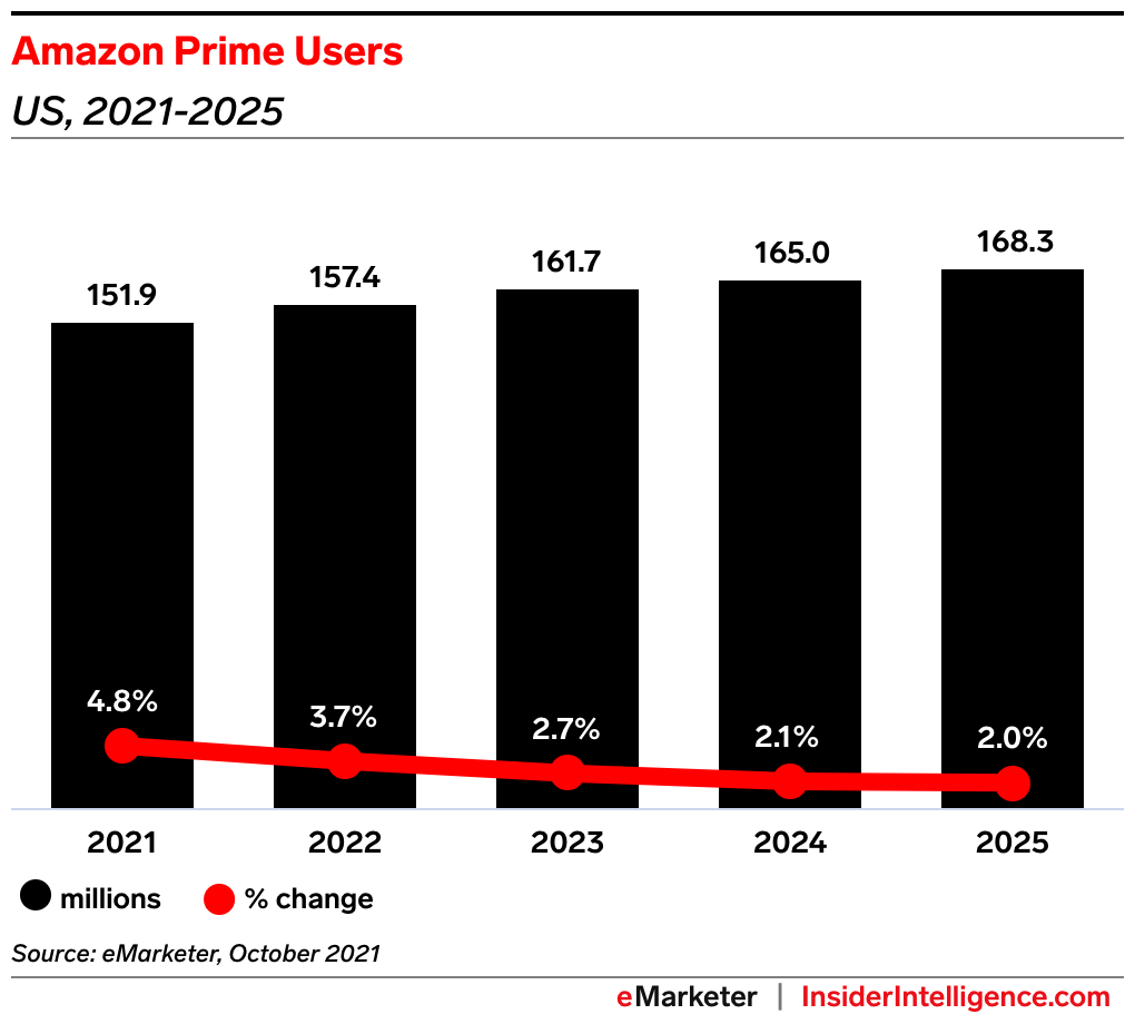 Membership yields loyalty: Among US Prime members who have been with the program for at least two years, about 98% renew their membership, per December 2021 data from Consumer Intelligence Research Partners.