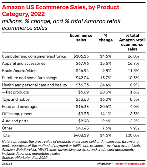 KEY STAT: Health, personal care, and beauty ecommerce sales will grow 24.4% this year, while food and beverage sales will increase by 20.6%—solidifying their status as Amazon’s fastest-growing ecommerce categories.