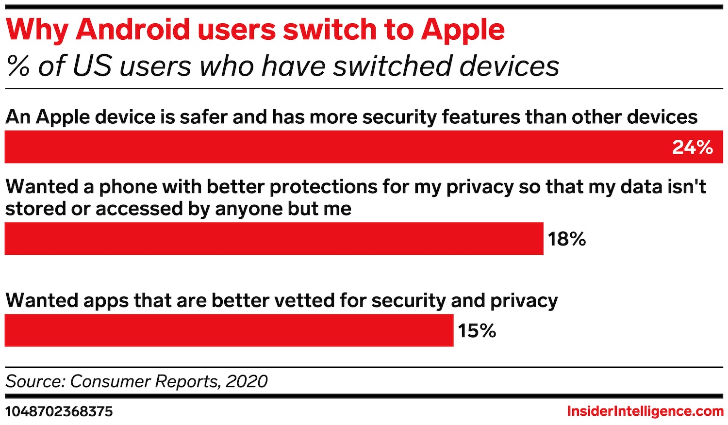 - 24% of users who switched from Android to an iPhone in the past five years said they thought Apple was safer.