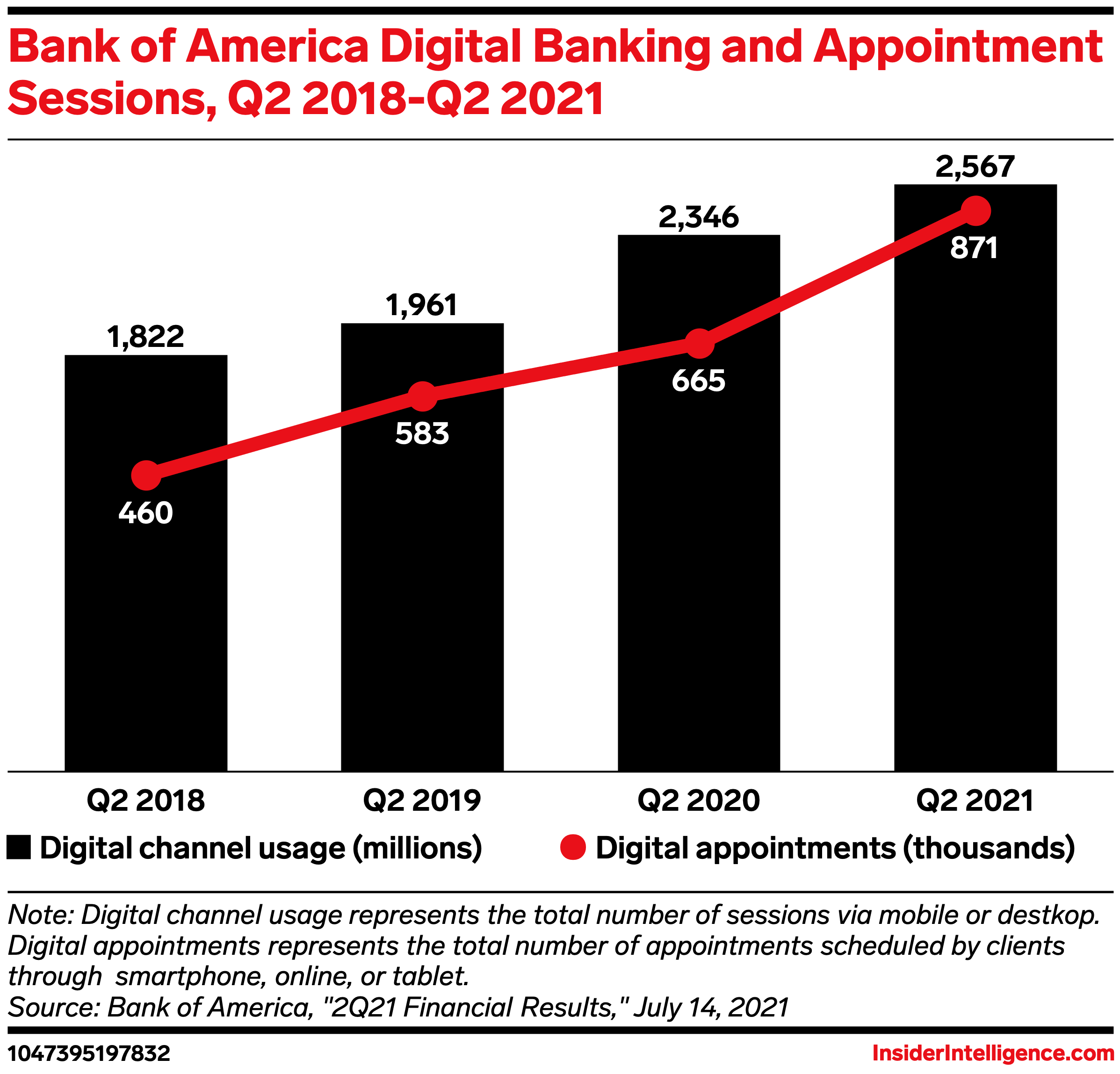 The news: Bank of America revealed that a pair of digital usage metrics surged year-over-year (YoY) during Q2 2021.