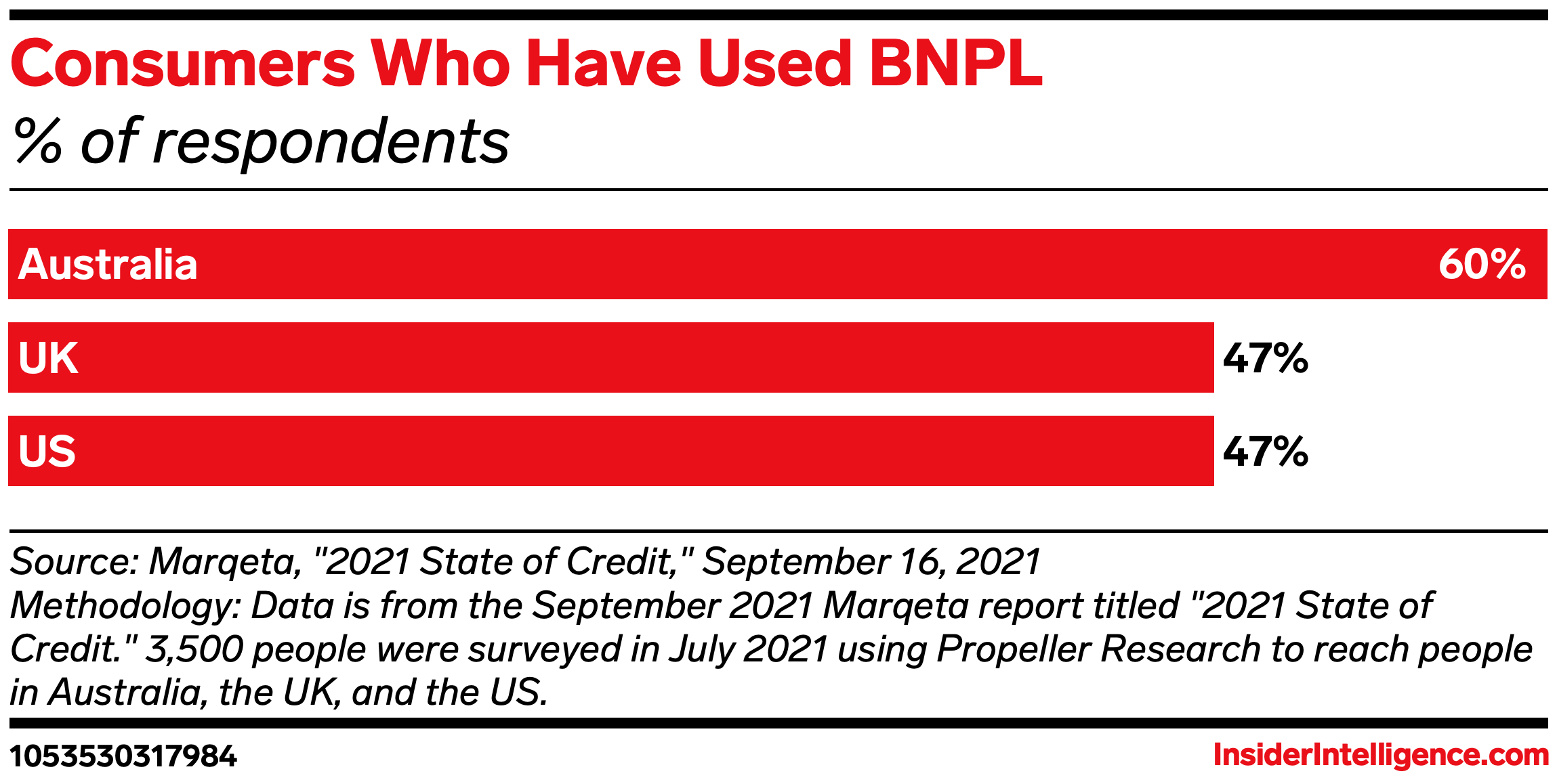 BNPL. Roughly 60% of consumers in Australia have used a BNPL solution, according to a Marqeta report. But BNPL’s growing popularity has led to some concerns: In March, the government drafted a set of guidelines for BNPL providers to protect consumers against emerging financial risks. But with BNPL becoming a worldwide phenomenon in the last year, Australian regulators may be looking to introduce legally binding rules.