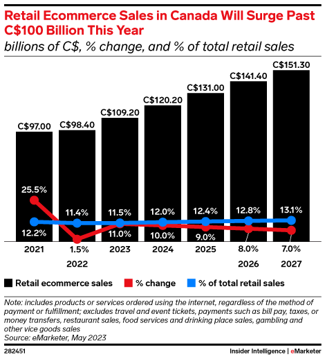 Ecommerce sales will surpass $C100 billion this year.