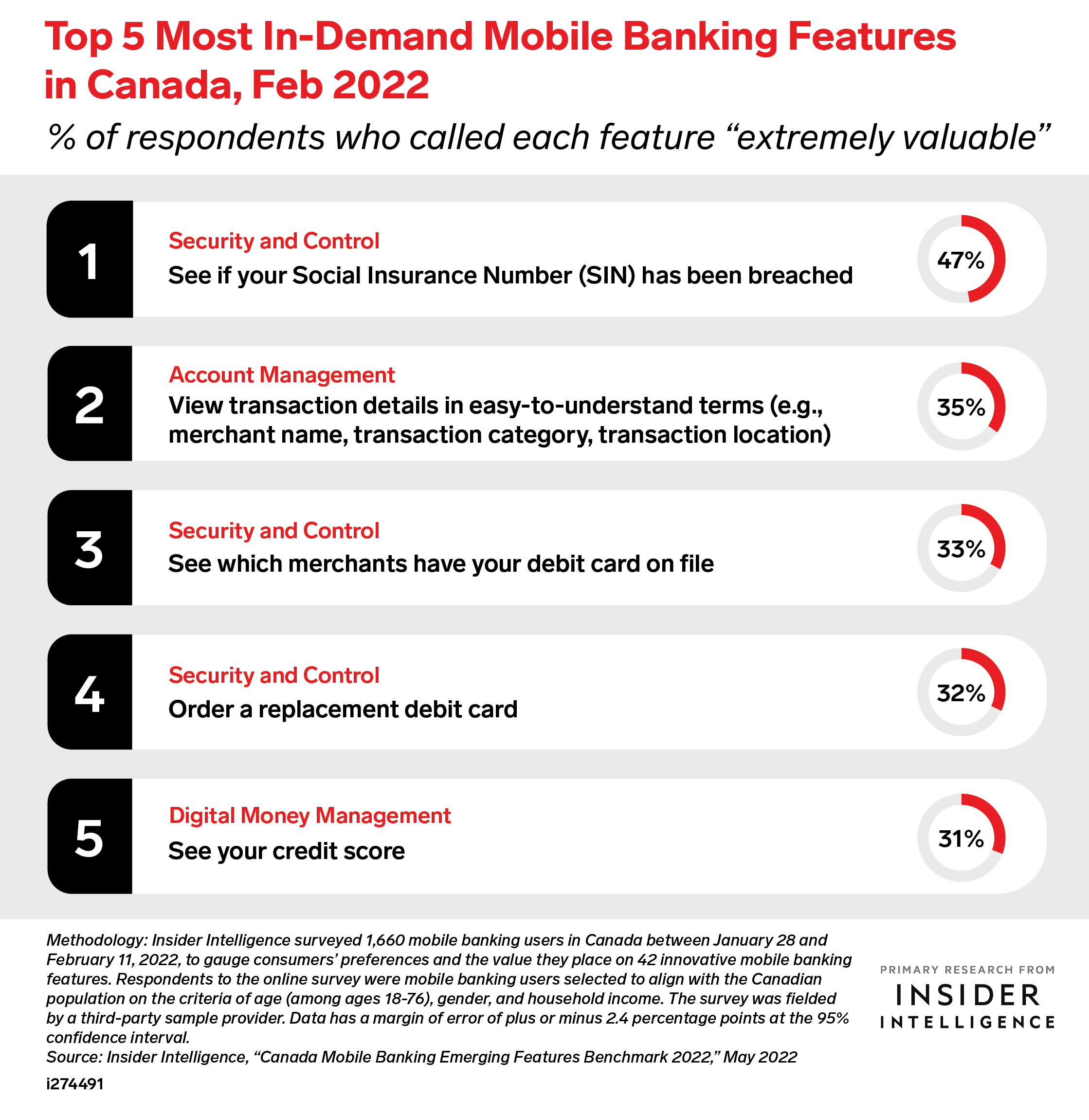KEY STAT: Security and control features are top of mind for consumers, with three of the five most in-demand features falling into the category. And Social Insurance Number (SIN) monitoring was the most valued by a wide margin.