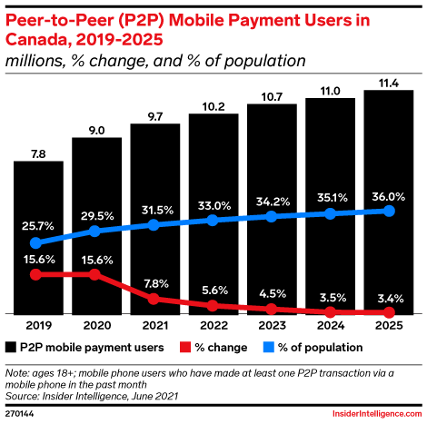 Canadian mobile penetration and bank access have created a high-potential environment for both proximity and peer-to-peer (P2P) mobile payments. But entrenched payment habits and monopolization have created a slow growth environment that will force providers to develop incentives, emphasize user experience (UX), and play up engagement among existing users to make the market a worthwhile growth play.