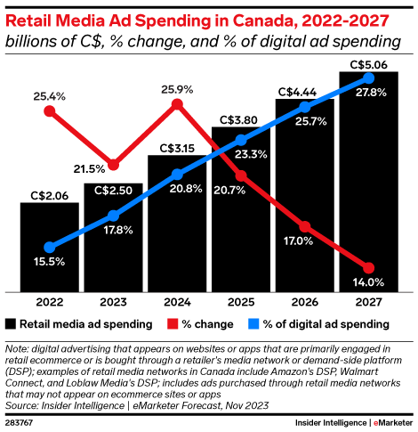 KeyQuestion: How will the retail media market in Canada impact advertiser budgets in 2024?