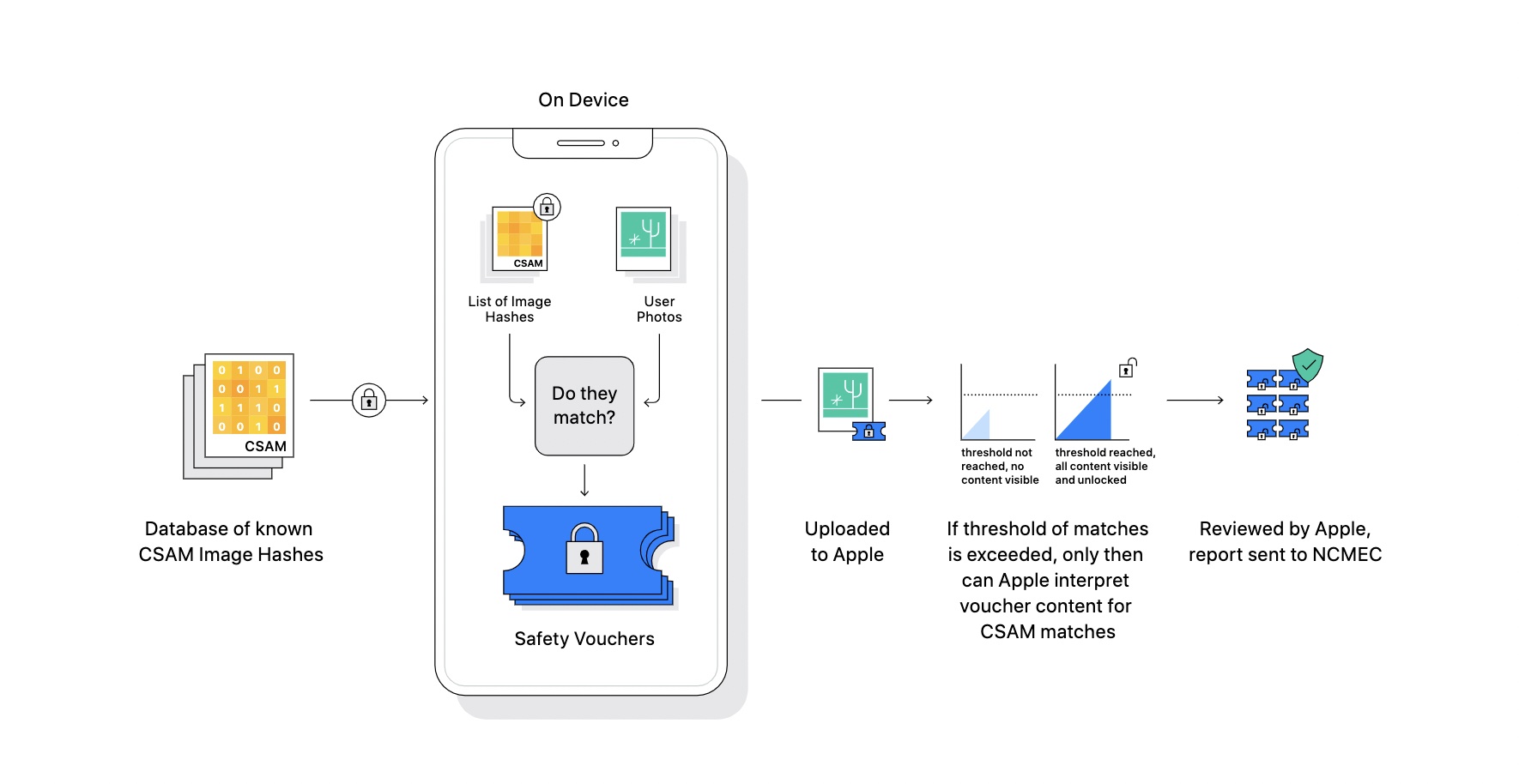 If enough similarities are flagged, the user’s data is then reviewed by an Apple employee, and passed along to law enforcement if necessary.