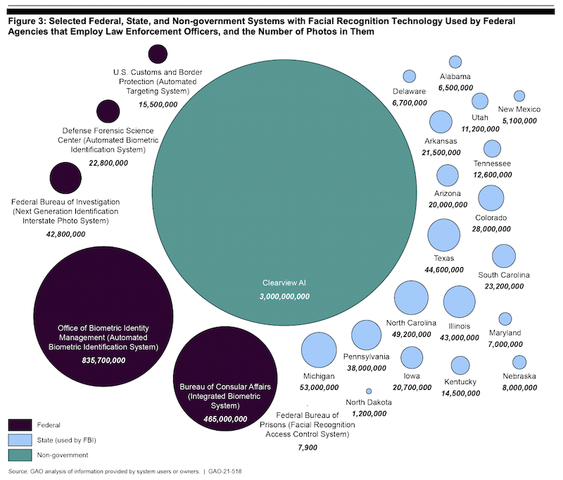 - “Clearview is telling investors it is on track to have 100 billion facial photos in its database within a year, enough to ensure ‘almost everyone in the world will be identifiable,’” per the Post. In context, there are 7.9 billion people on the planet.