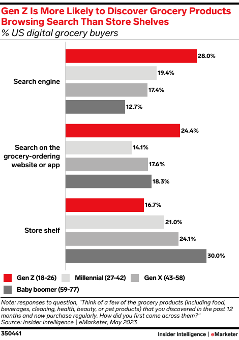 KEY STAT: Gen Z digital grocery buyers represent the first generation that is more likely to discover products through online search than on store shelves.