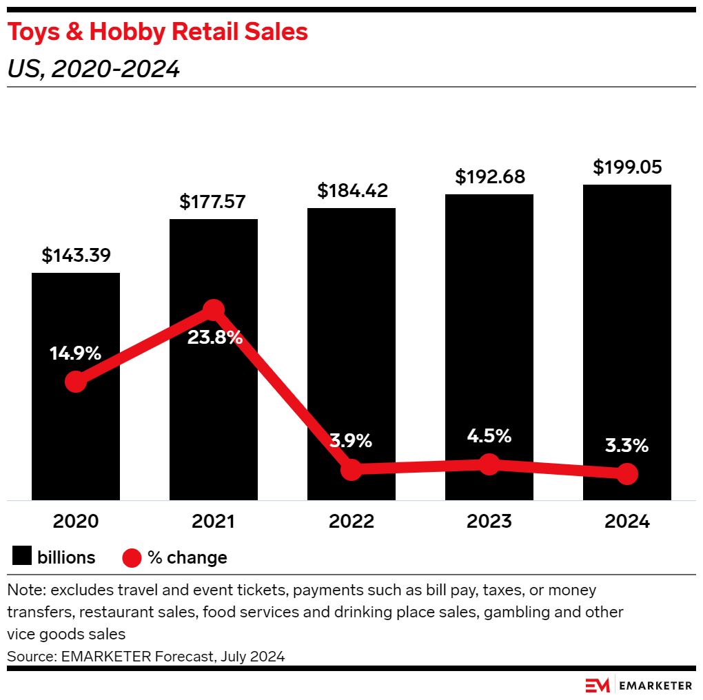 Toys and hobby sales will grow 3.3% this year