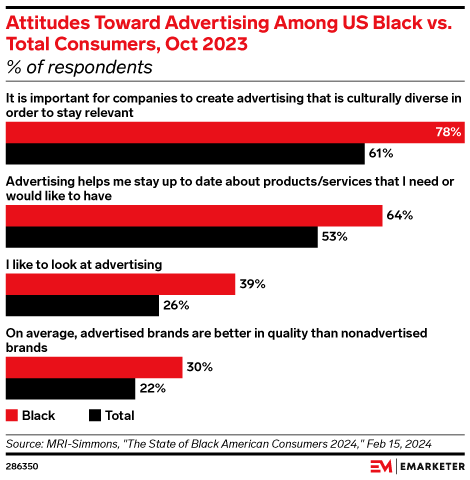 Black consumers find advertisements more helpful than the general population. But Black consumers also feel advertisers aren’t always genuine when incorporating cultural diversity into their campaigns.