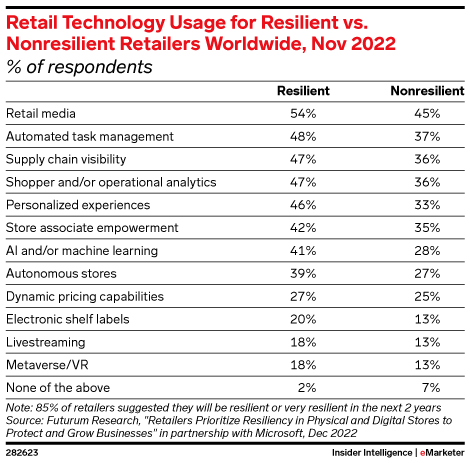 KEY STAT: Retail media is the most widely adopted technology (54%) by resilient retailers—those most adaptable to change during times of uncertainty—per a December 2022 Futurum Research survey.