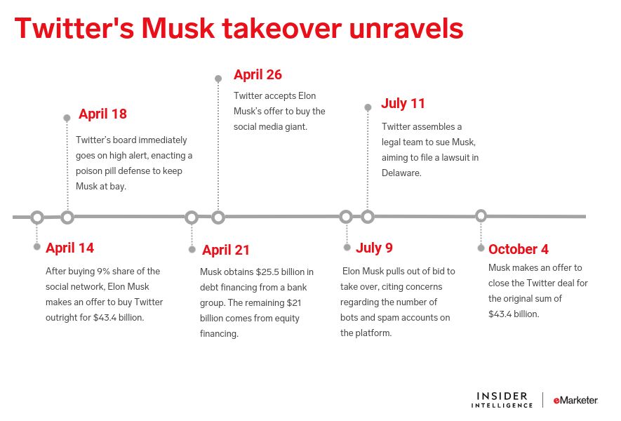 - Musk’s public dispute with Twitter and its leadership in the months since the initial offer negatively affected its personnel and advertising ambitions.