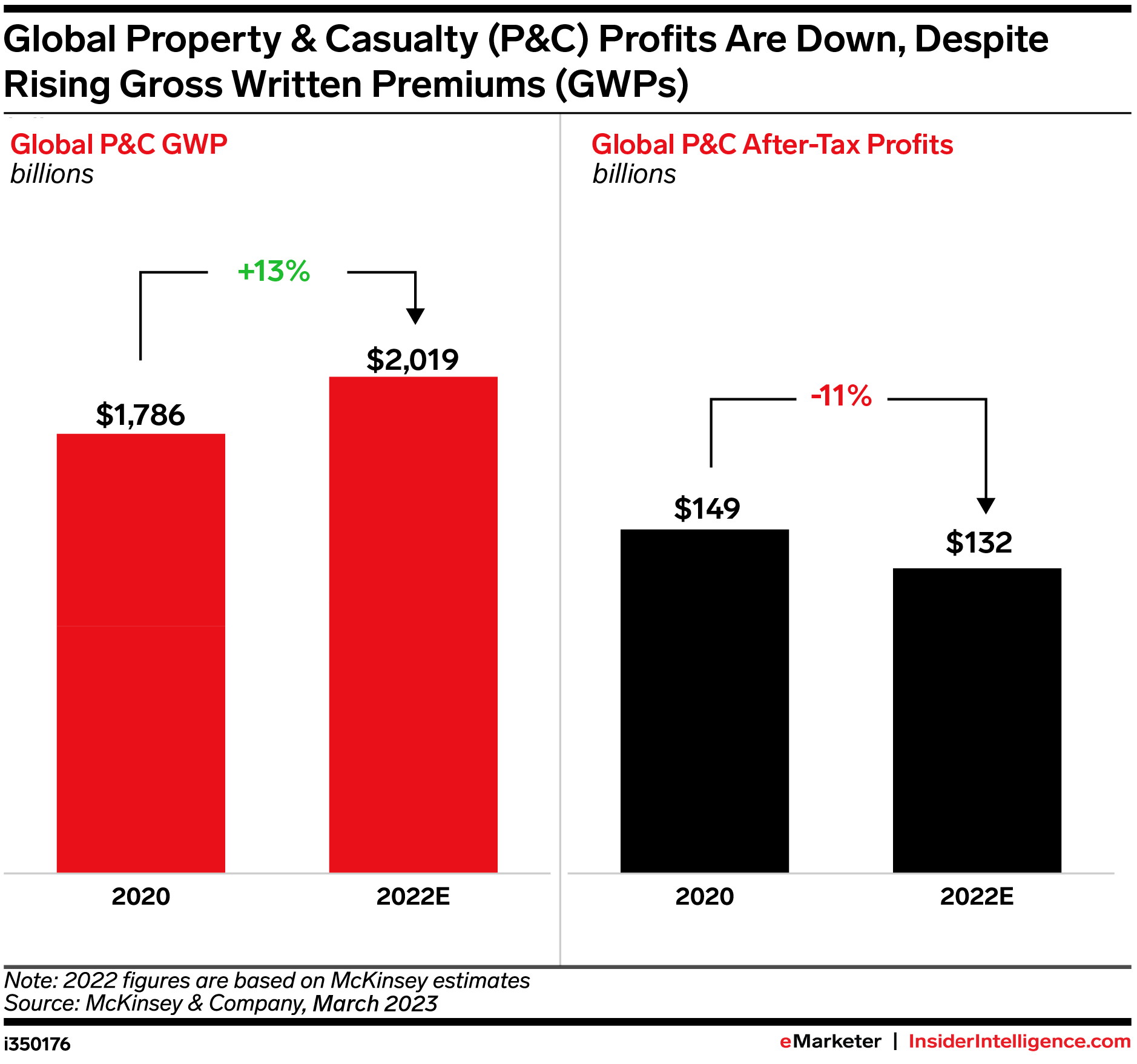 KEY STAT: Despite significant increases in gross written premiums from 2020 to 2022, property and casualty (P&C) profits still decreased by 11.4%. In an increasingly challenging profitability landscape, P&C insurers must seek alternative ways to reach customers.