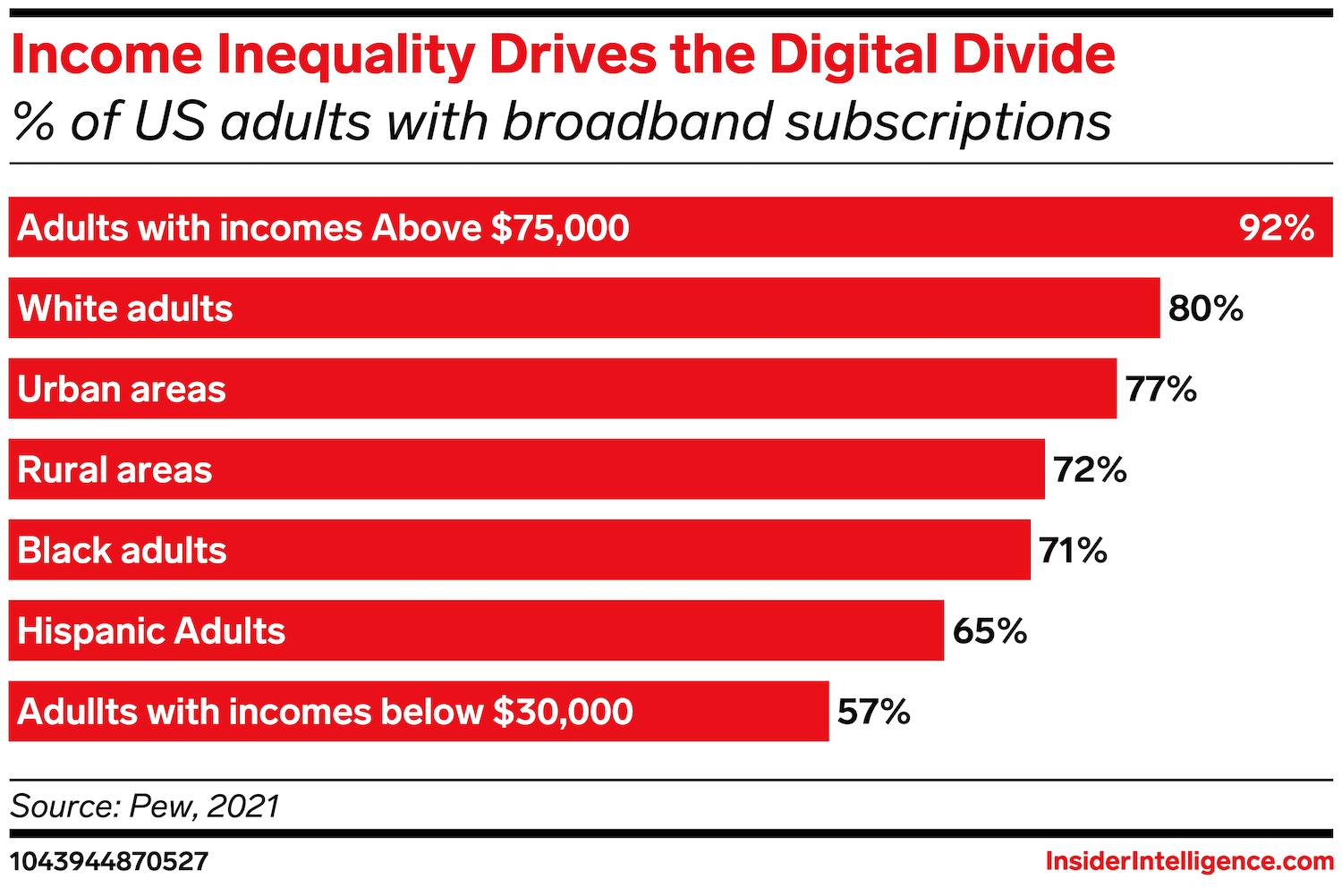 - Around 18.5 million US households lack broadband access because of its cost. Those making less than $30,000 per year shoulder most of the burden.