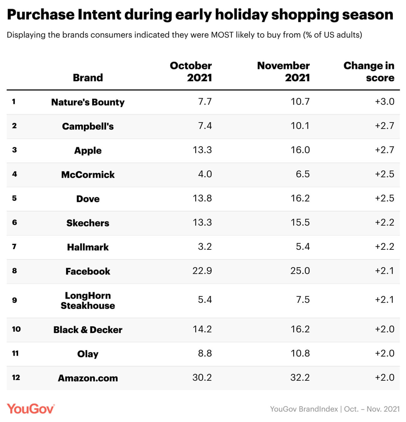 “Ultimately, YouGov Safe helps us understand not just what consumers say they do, but what they are actually doing online,” says Hamish Brocklebank, managing director of YouGov Safe. “Since everyone has such different tastes for gift-giving, it makes sense that the most frequent individual items purchased on Amazon during the holiday period were gift cards and big brand food items.”