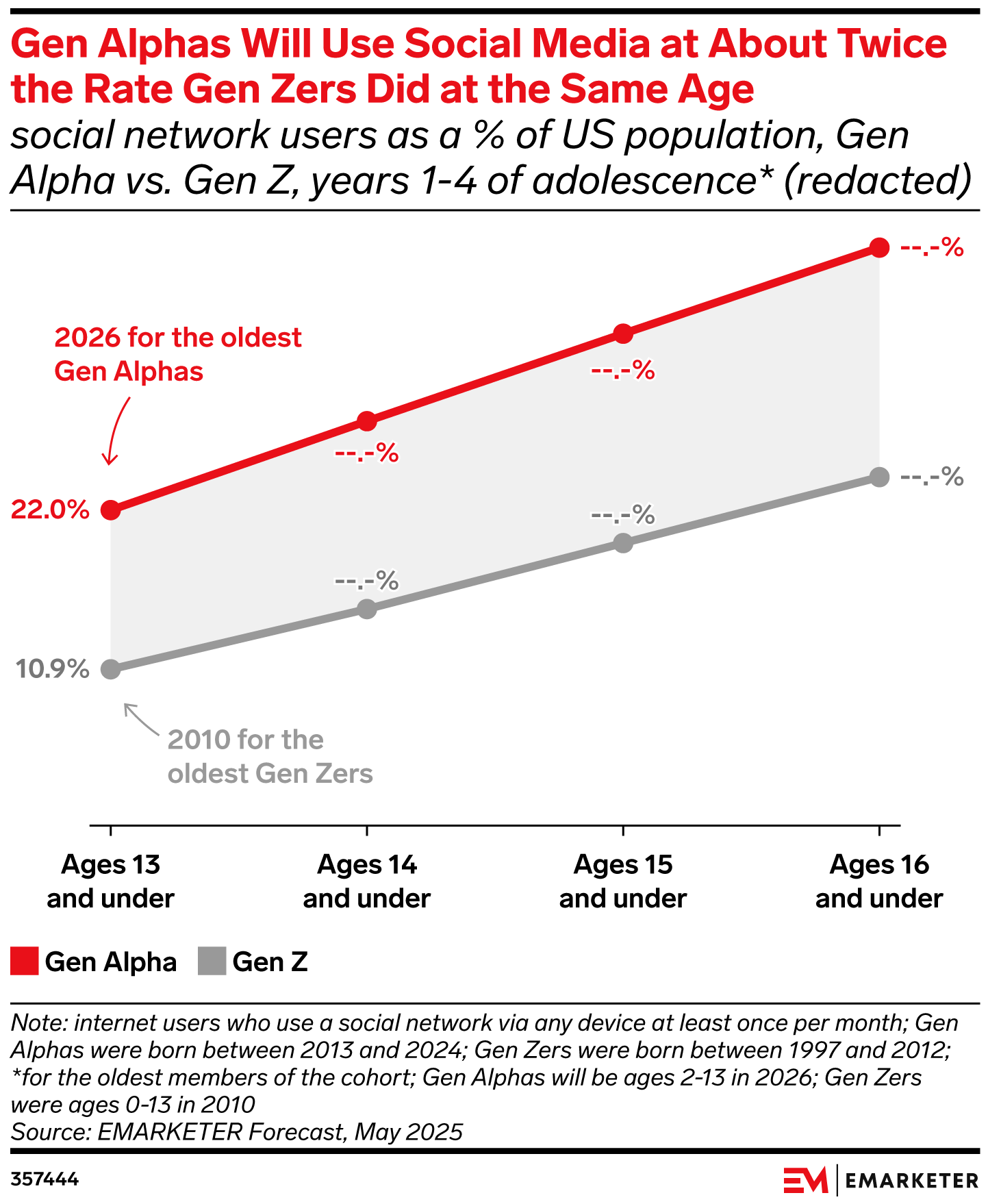Key Stat: In 2026, 22.0% of Gen Alphas will use social media versus 10.9% of Gen Zers when they were around the same age.