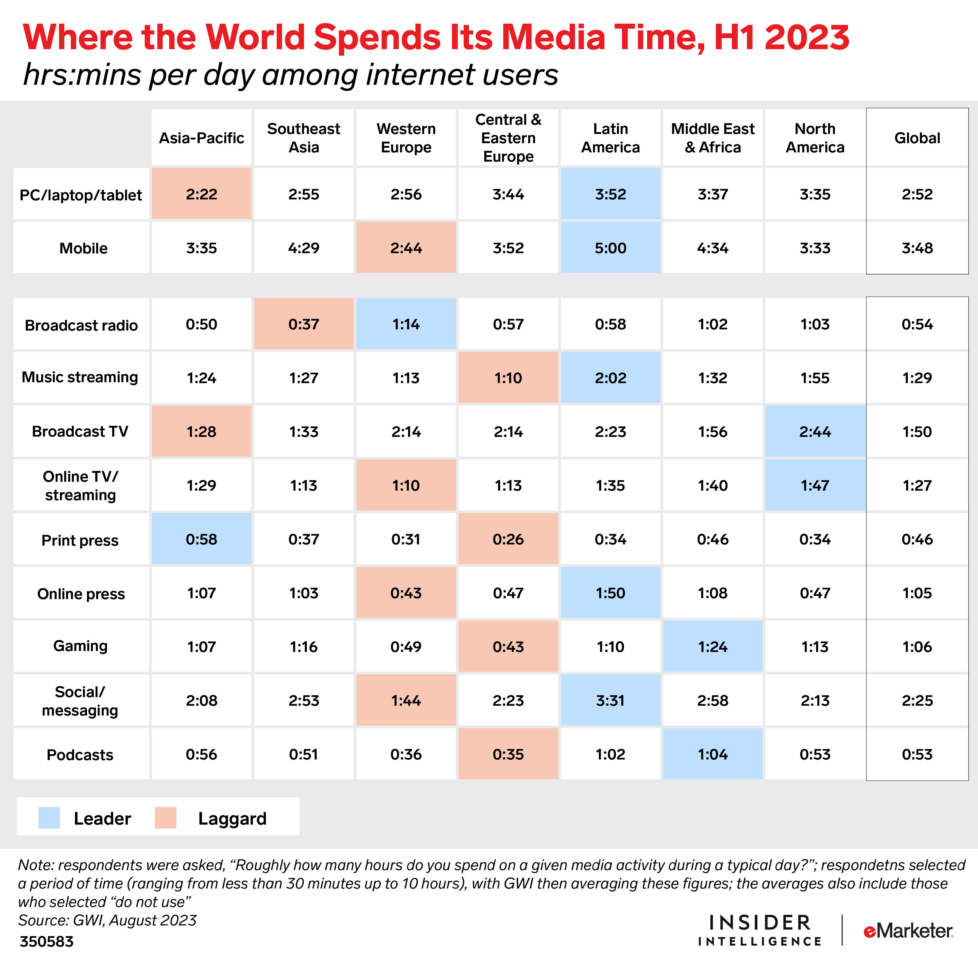 The 13th edition of the Global Media Intelligence Report is a continued partnership with Publicis Media-Starcom and collaboration with GWI, a primary research provider to Publicis Media-Starcom and a valued partner of Insider Intelligence | eMarketer. This close collaboration ensures consistent representation of topics, demographic groups, and time frames from the 2023 edition.