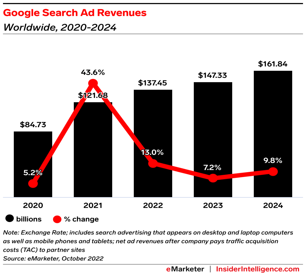 Analyst take: When it comes to a company as big as Google, poor results will have a ripple effect across its entire sector. “Google closed the year in a very different place than it was at this time last year,” said Insider Intelligence analyst Evelyn Mitchell. “Even search revenues, which are performance-driven and typically insulated from ad spending downturns, also declined. These results do not bode well for the rest of the digital advertising industry.”