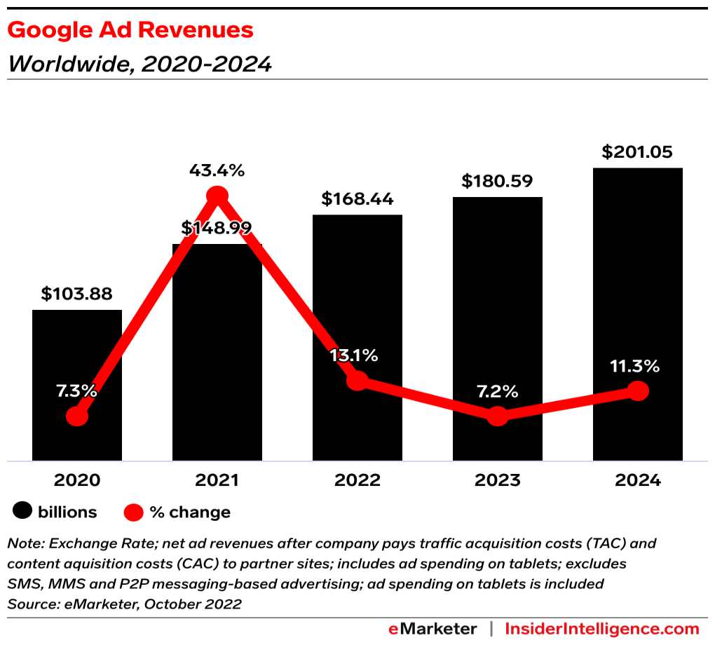 - Things aren’t looking great for 2023. We downgraded our global ad spending growth estimate from 8.9% to 6.9% for the year.