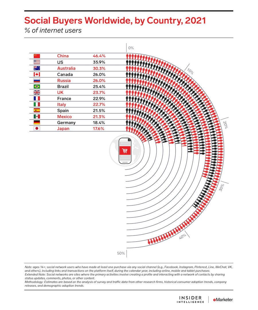 Although the US has begun to reopen post-pandemic, certain trends that started during lockdowns will continue to grow this year. We expect US social commerce sales to rise by 35.8% in 2021 to $36.62 billion, as noted in our June 2021 report, "Social Commerce Forecasts 2021: How a Trend ‘Made in China’ Is Shaping Up in the US."