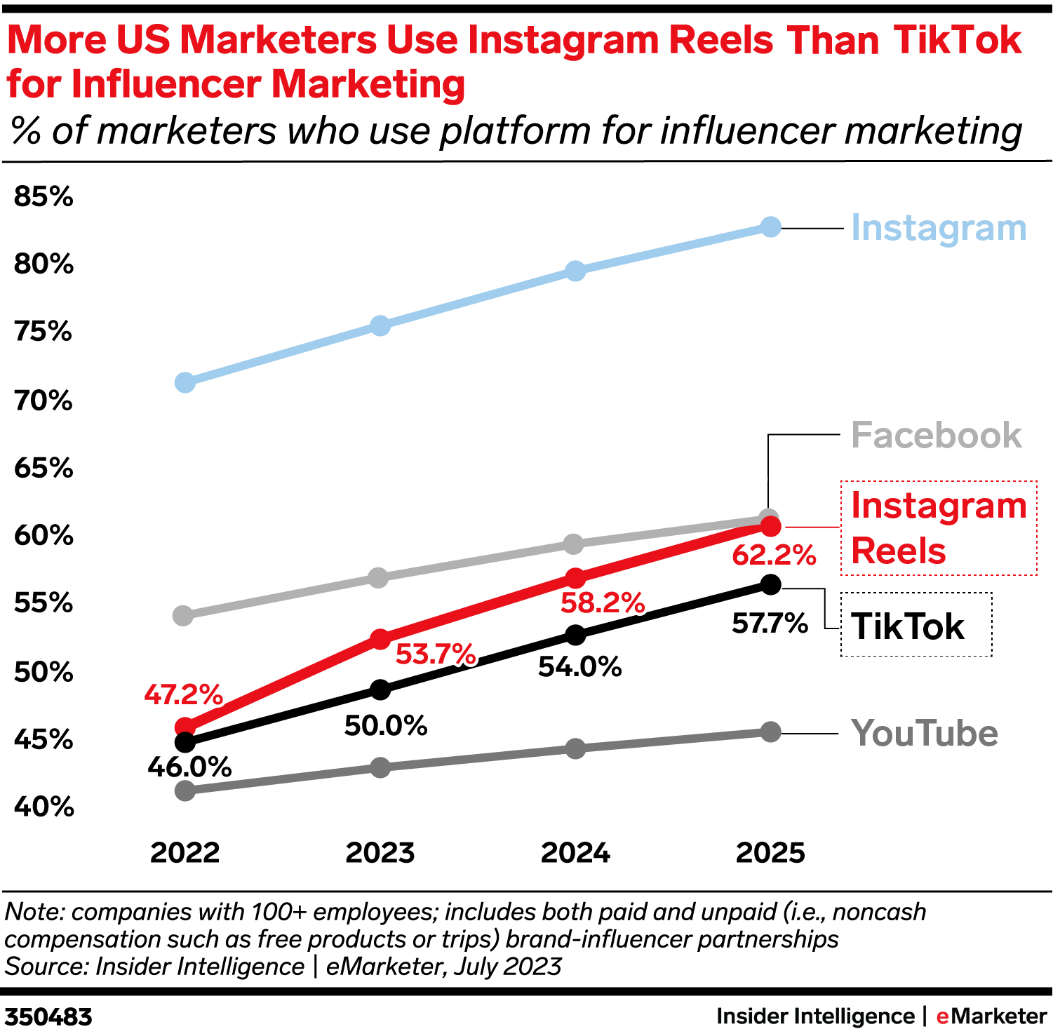 KEY STAT: Half of US marketers (50.0%) will use TikTok for influencer marketing in 2023, compared with 53.7% for Instagram Reels.