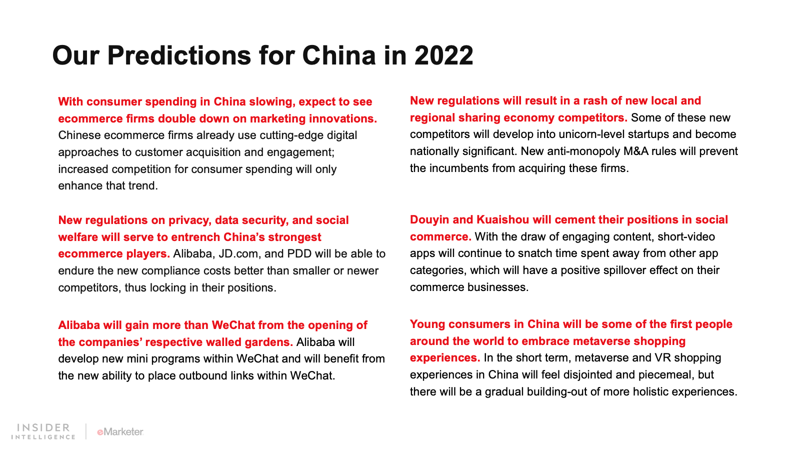 In 2022, China’s tech sector will continue dealing with a new regulatory climate, resulting in some new winners and a few familiar losers. Short-form video will make gains with commerce, and the metaverse will rear its head.