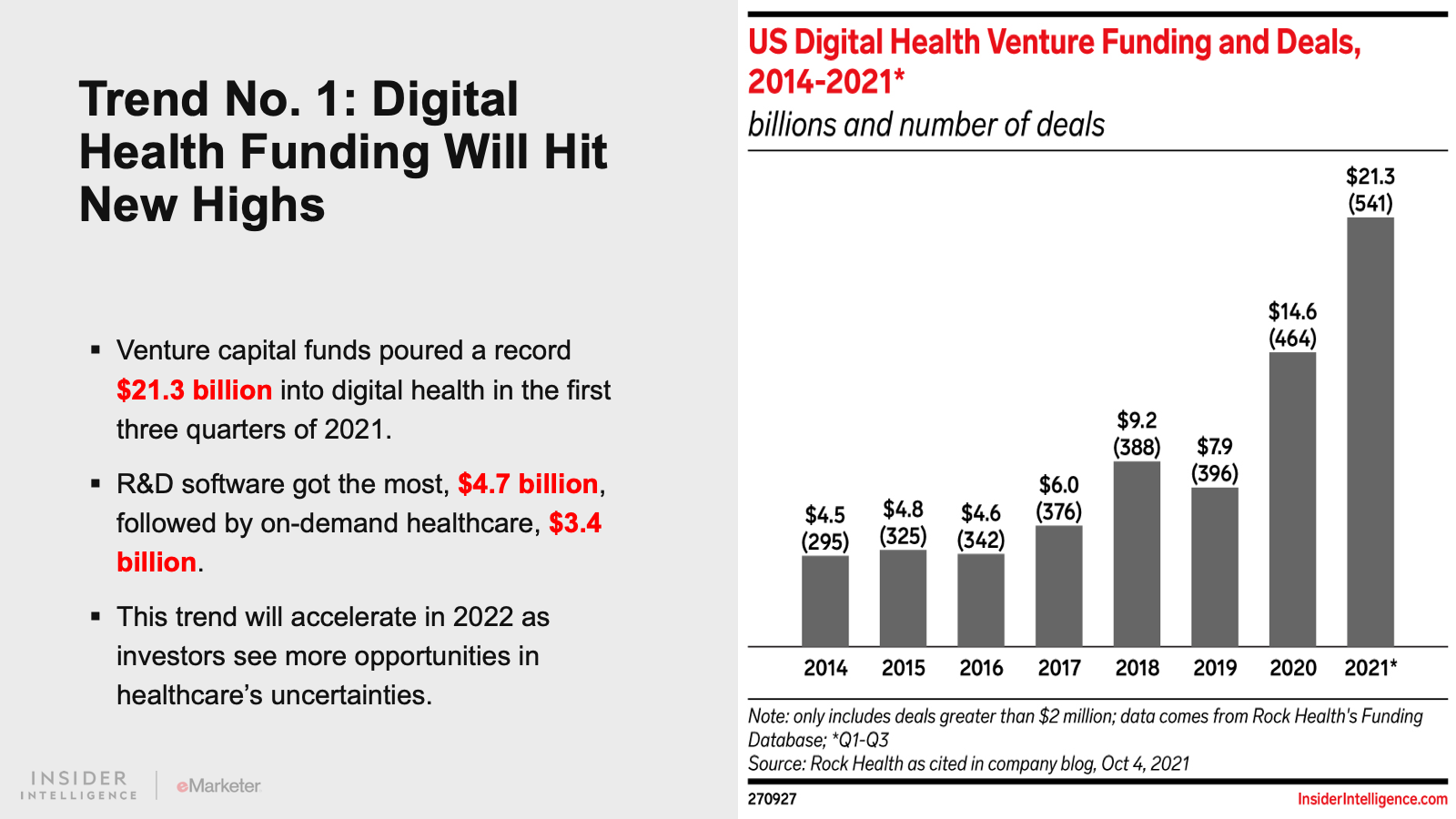 The US healthcare system has many problems, but one of the most critical is access. Investors and corporations are pouring billions of dollars into digital health companies with the goal of using technology to reach consumers where they are and deliver the care they need. Solutions range from telehealth and the digital front door to retail health and remote patient monitoring (RPM). There’s no sign the funding flood will dry up in 2022. Will it cause more disruption, more noise, or some real innovation?