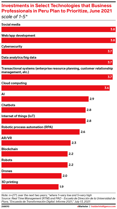 Investments in Select Technologies that Business Professionals in Peru Plan to Prioritize, June 2021 (scale of 1-5*)