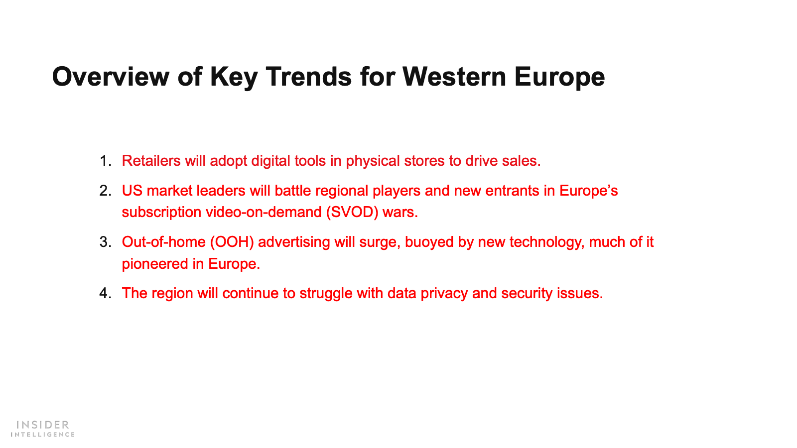 KEY STAT: Retail ecommerce sales in Western Europe will grow by 6.2% in 2022, nearing $660 billion. Physical retailers hope that upgrading point-of-sale (POS) and display technology will keep digital buyers shopping in-store as well.