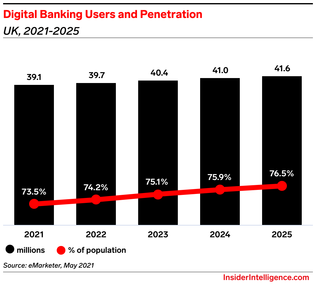 - Neobanks: Digital-only insurgents in the UK include Revolut, Starling, and Monzo. All three have seen sizable recent growth in their user bases. They have also been rolling out a slew of products, ranging from Monzo’s Flex buy now, play later (BNPL) offering to Revolut’s early-wage access.