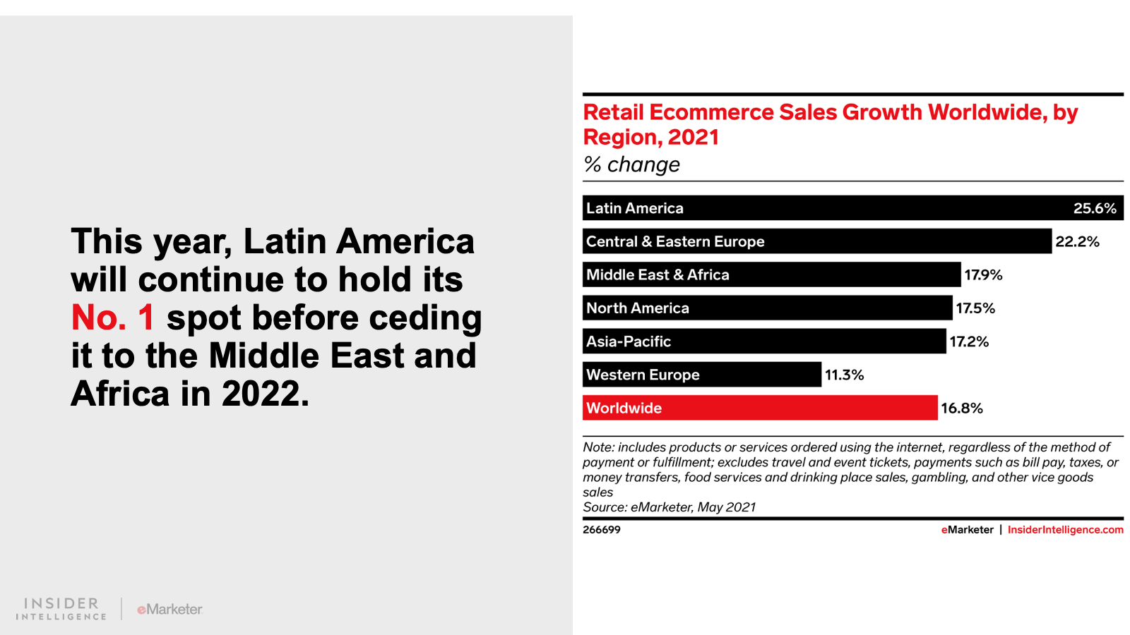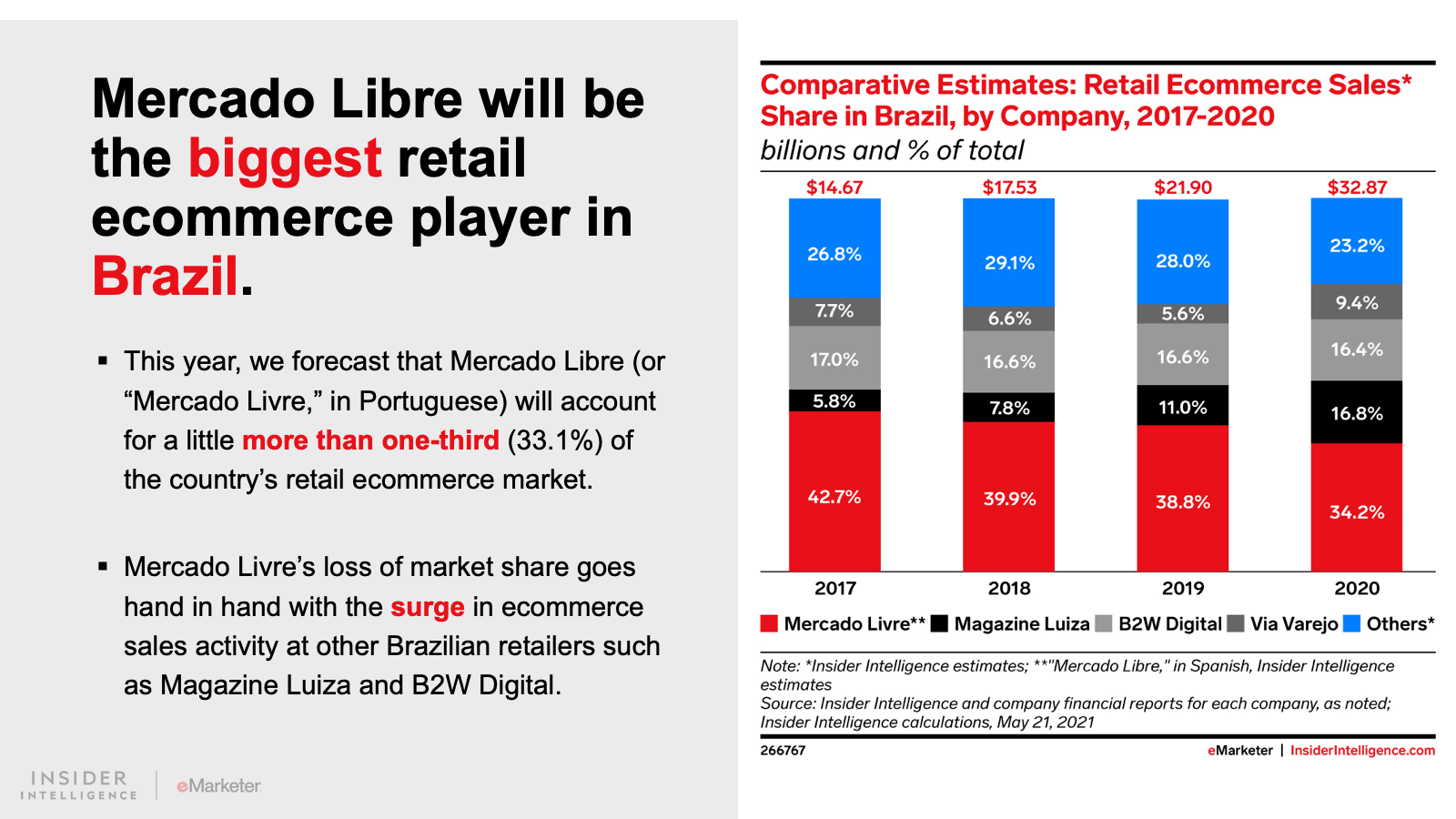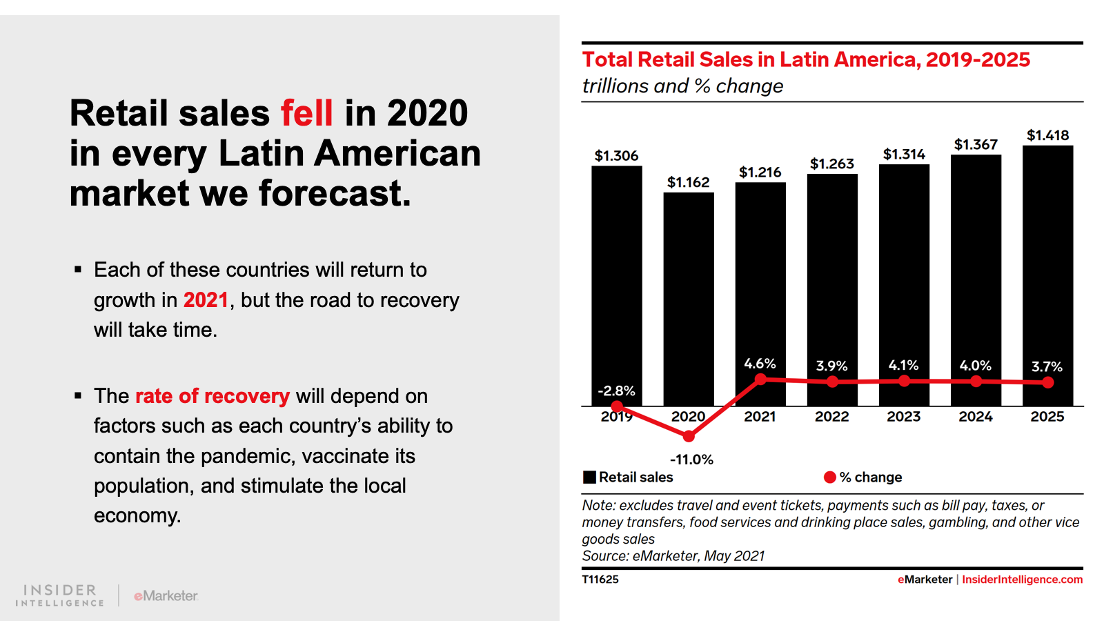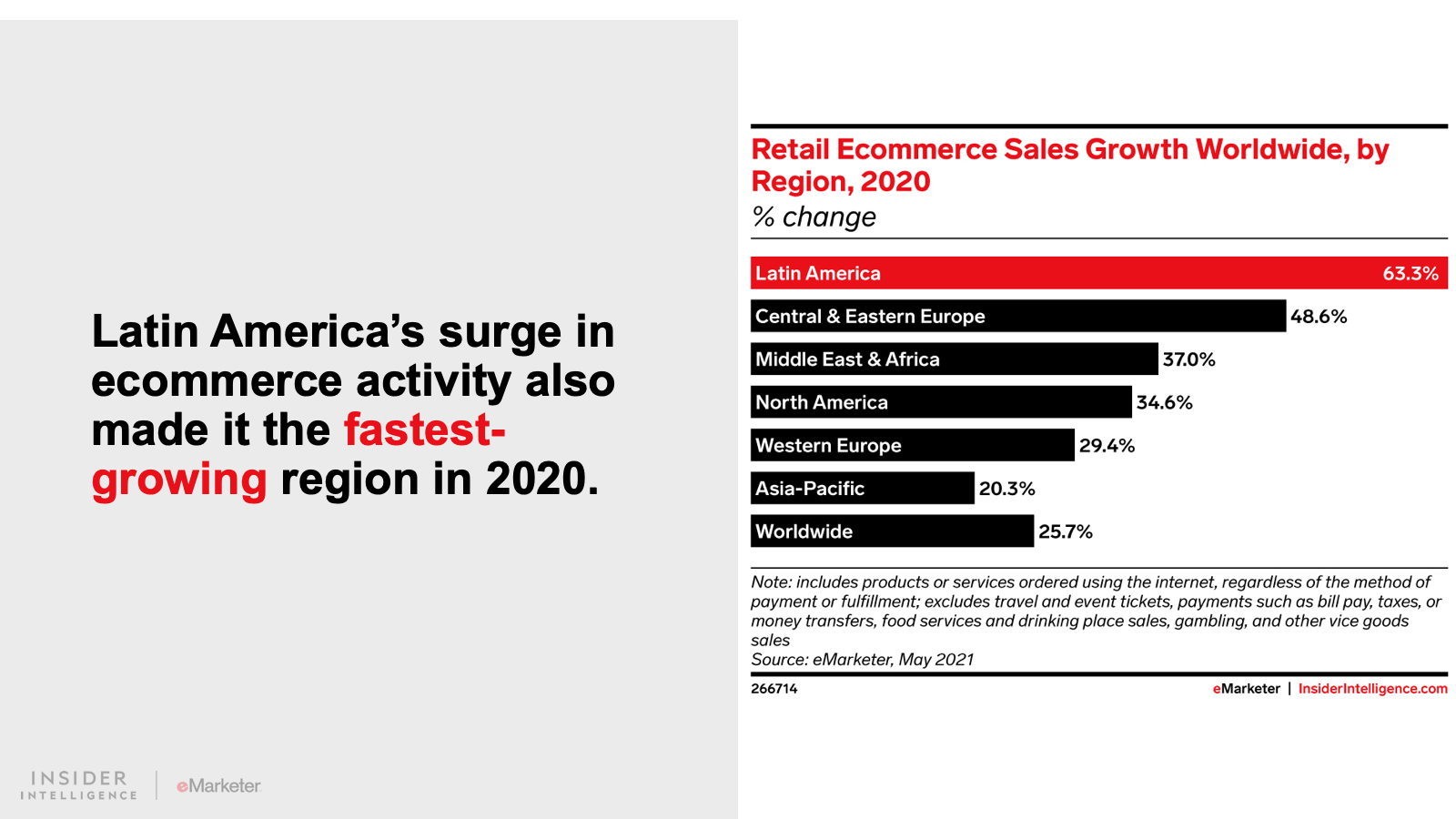 WHAT’S IN THIS REPORT? This report features our latest forecasts for total retail, ecommerce, and mcommerce sales in Latin America, with breakouts for Argentina, Brazil, and Mexico. It also examines key drivers fueling regional market movements in 2021 and beyond.