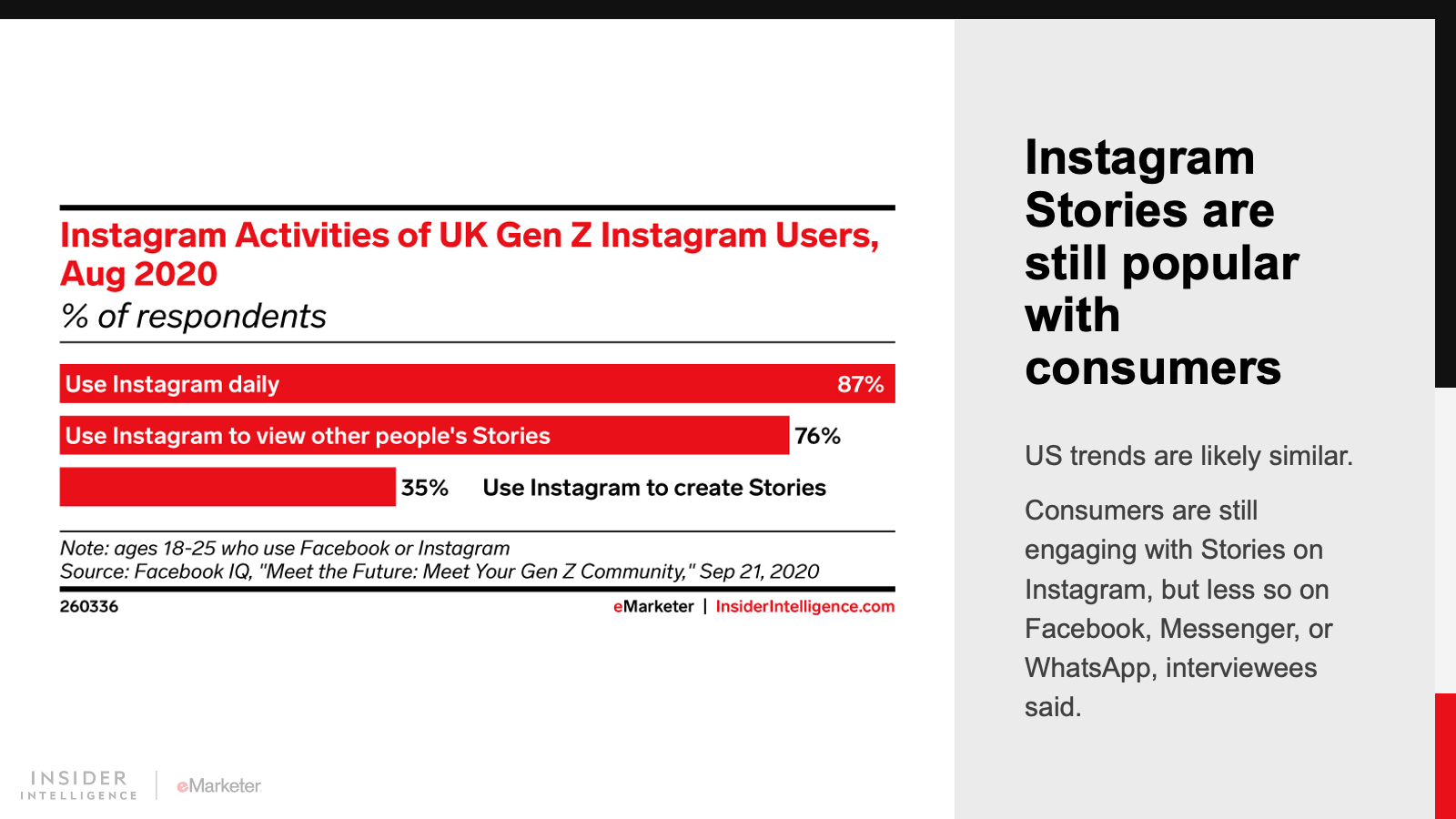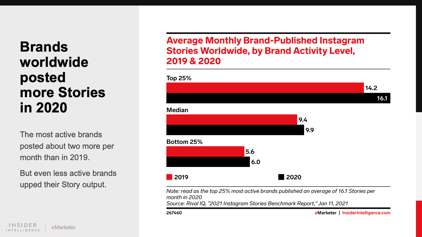 We expect Instagram and its siblings will bring more social commerce features to Stories. We also foresee more video and interactivity. The rise of short-form video is something to keep an eye on, but we believe the uniqueness of the Story format will help it solidify its place as an important venue for social media marketing.