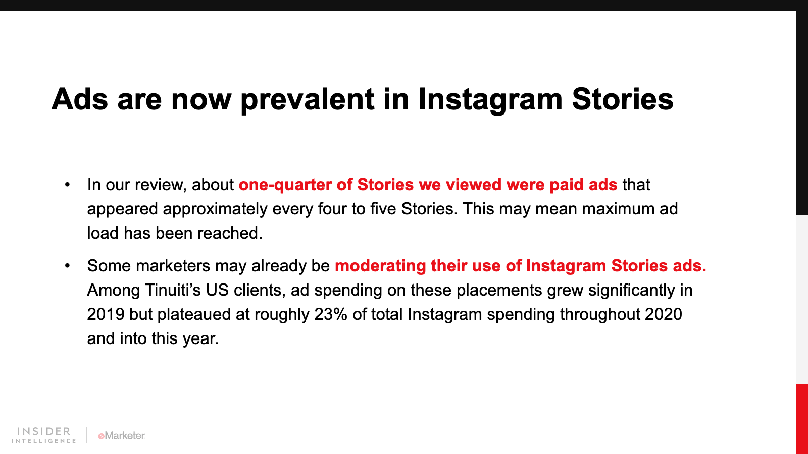 Instagram’s ad formats are much stronger than they used to be, and paid ads are also starting to roll out on LinkedIn. But there are indications that ad spending on Instagram Stories may be reaching a plateau due to high ad load.
