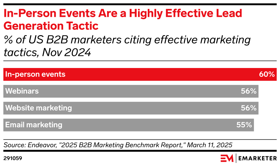 B2B events are one of the most effective ways to engage buyers, build relationships, and drive pipeline. In fact, 60% of B2B marketers say in-person events are an effective lead generation tactic, according to a November 2024 Endeavor survey. However, rising budget scrutiny and increased competition for buyer attention are intensifying pressure to demonstrate measurable event ROI. Success depends on strategic planning, smart use of technology, and a focus on delivering real value to attendees. B2B brands can drive results by hosting their own events, creating branded experiences at industry conferences, or participating in third-party events as sponsors or speakers.