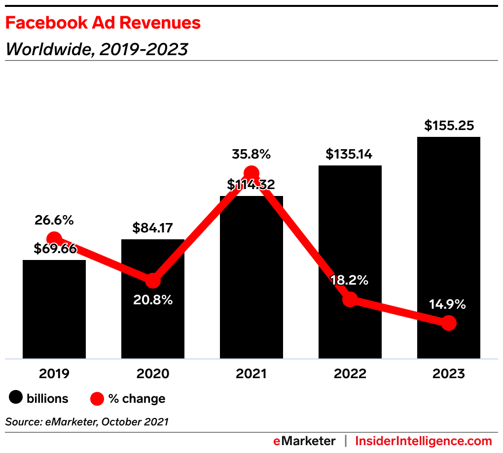 Analyst take: “It’s clear that there are many big roadblocks ahead as Meta faces tough new competition for ad revenue such as TikTok, and as it contends with ongoing ad targeting and measurement challenges from Apple’s iOS changes,” says Insider Intelligence principal analyst Debra Aho Williamson. “While we expect Meta to ramp up testing ads and commerce within its metaverse offerings this year, those efforts will be highly experimental and not likely to drive much revenue in the near term.”
