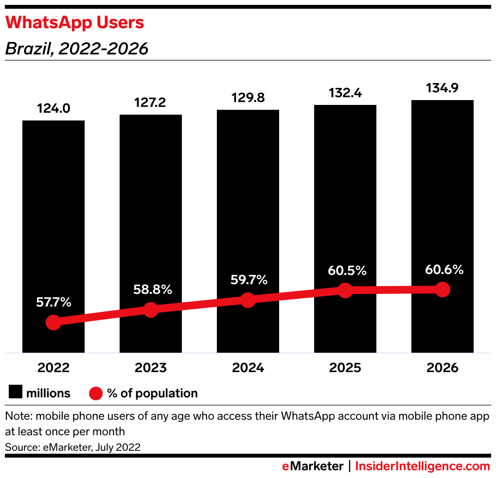 - There too, WhatsApp was stiff-armed by regulators. It wasn’t until May 2022 that the government extended WhatsApp’s payment service to 100 million users—a small share of the 523.2 million people in India expected to use the app this year, per Insider Intelligence forecasts.