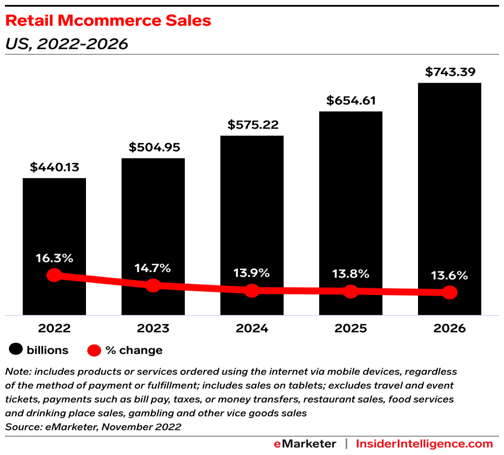 The big picture: Mcommerce accounted for 41.8% of US retail ecommerce sales in 2022, a share that we expect to grow to 43.7% this year. But checkout speed and ease of use remain significant barriers to mcommerce, with nearly one-third of US consumers preferring to transact via desktop because it’s simpler, per Forrester.