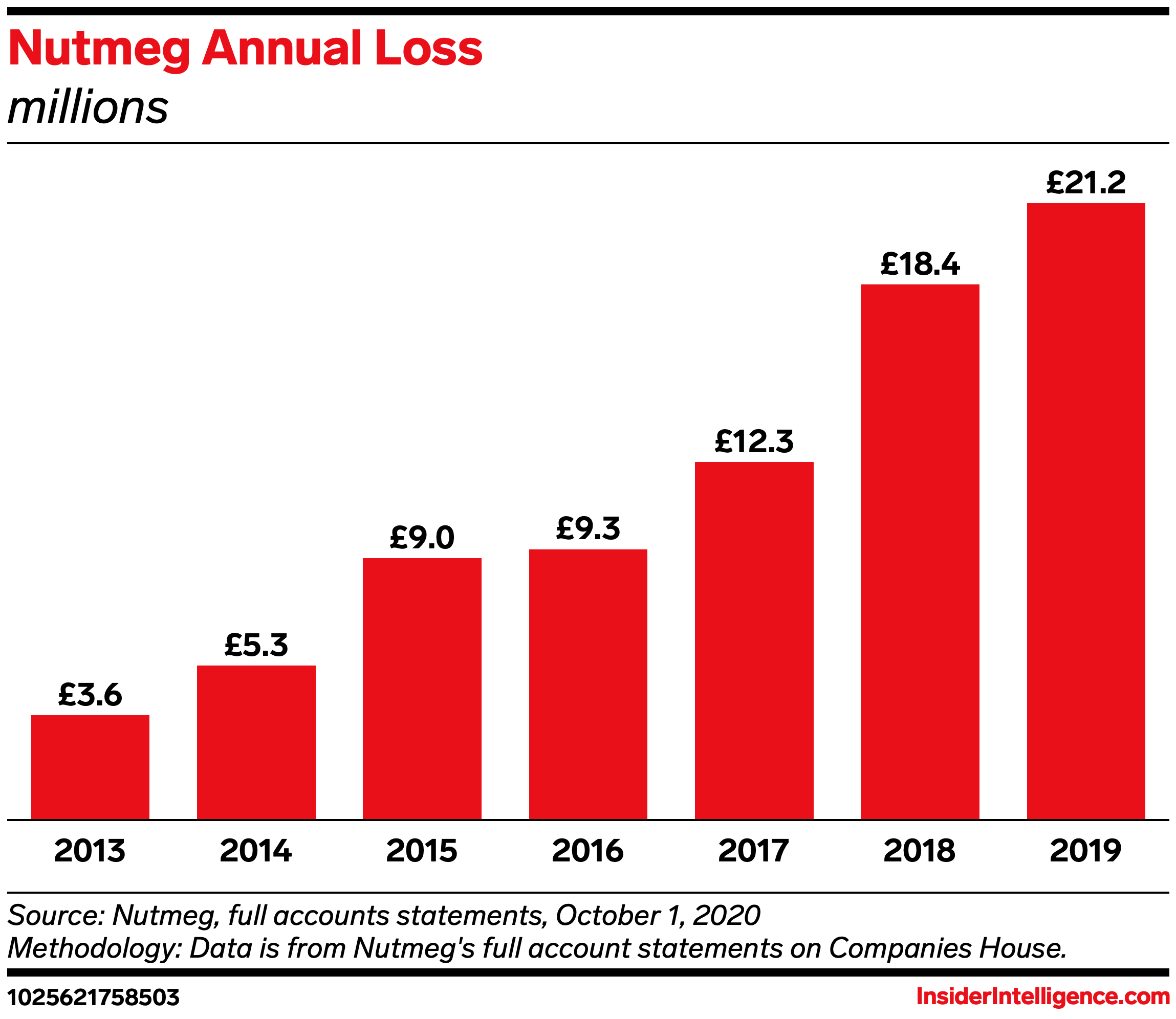 - The resulting increase in AUM should reverse its year-on-year deepening losses. Nutmeg reported a loss of £21.2 million ($27.1 million) in 2019, the eighth year in a row that its losses widened. Robo-advisors conventionally struggle with customer acquisition costs, but with the partnerships easing its user growth, Nutmeg was able to increase its revenue by 66%. Its growing AUM also heralds a shift toward profitability: It’s estimated that robo-advisors that charge a fee of 0.45% or higher, as Nutmeg does, need to reach between $3.5 billion and $5.3 billion in AUM to break even.