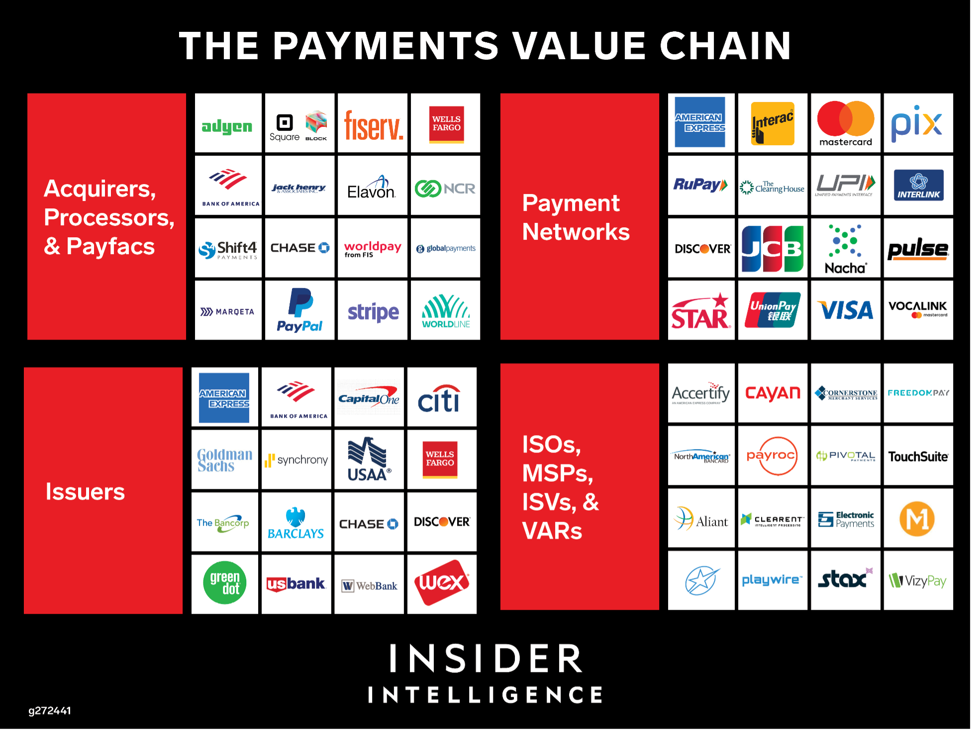Payments Ecosystem: Acquirers and processors, networks, and issuers each play distinct roles in the payments purchasing chain. But those roles are shifting amid commoditization, new competitive dynamics, and technological innovation.