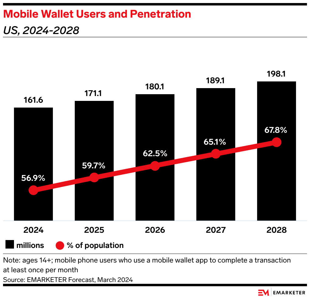 Key Stat: Almost 6 in 10 US consumers will use mobile wallets to make payments this year, and we expect that number to climb to nearly 70% by 2028. Innovation in commerce management features will push user engagement into overdrive.