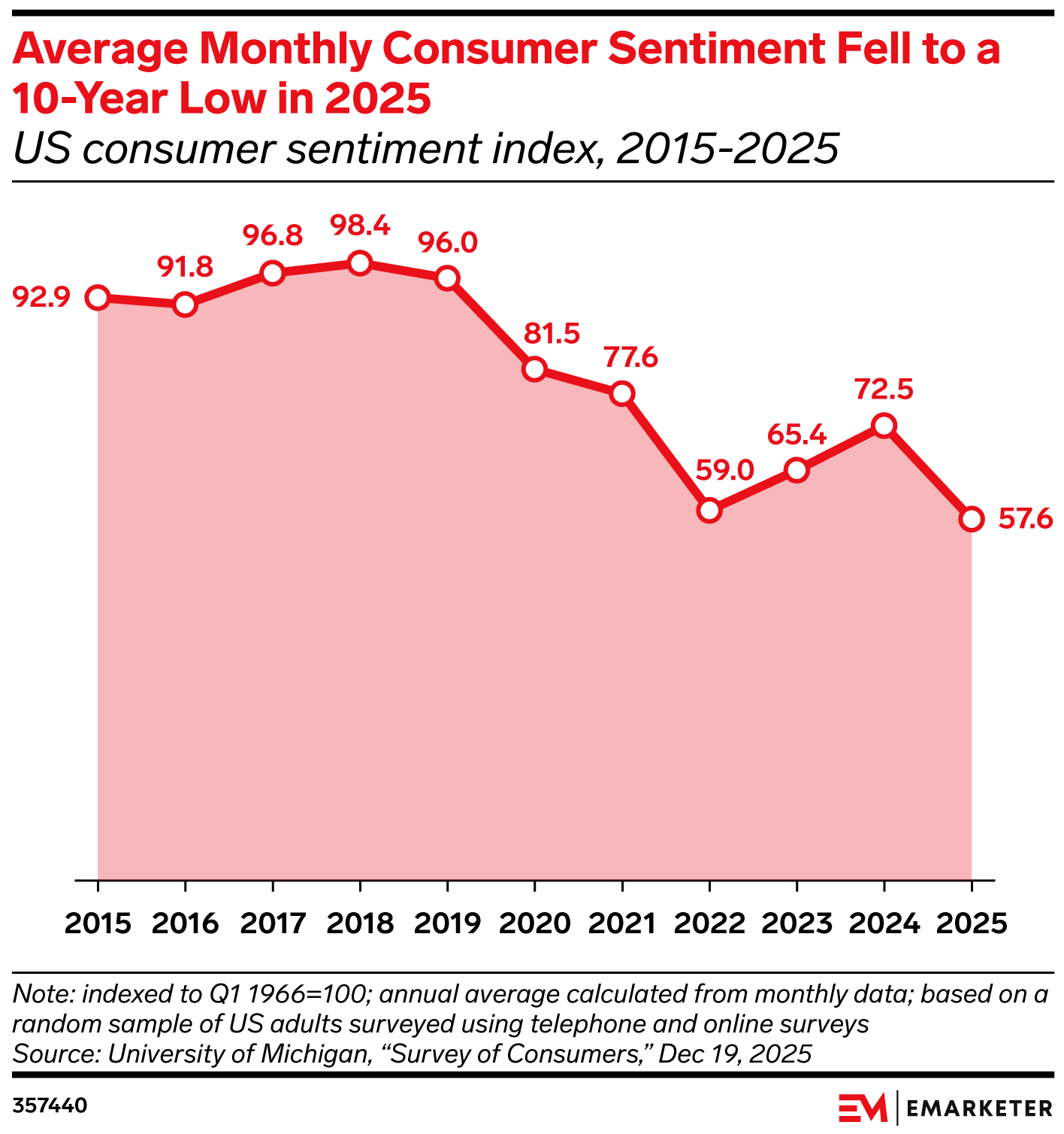 Key Stat: US consumer sentiment fell by nearly 15 points YoY in 2025, a 10-year low.