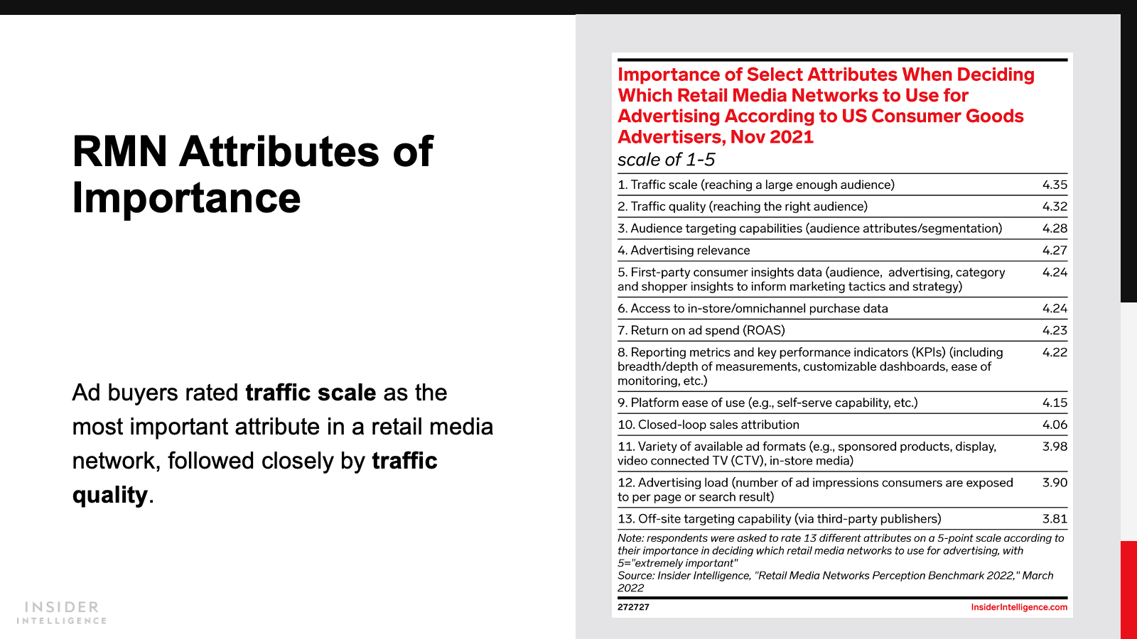 KEY STAT: Advertisers said traffic scale was the most important attribute in a retail media network with an average of 4.35 on a 5-point scale of importance.