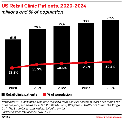 Most patients get retail clinic care at CVS and Walgreens.