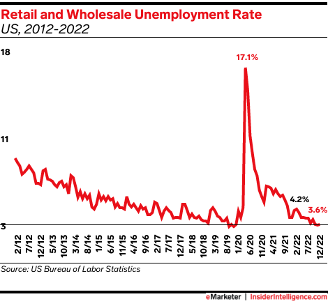 - The US unemployment rate is 3.5%, and 3.6% among retail and wholesale workers, per the US Labor Department.